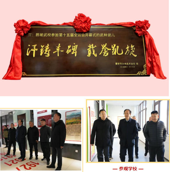 11月19日,登封少林武术协会荣誉主席焦红波、主席郑光荣一行,专程来到少林鹅坡武术学校,赠授贺匾,表彰其在第十五届全运会开幕式上的卓越表现。牌匾以“汗铸丰碑 载誉凯旋”为铭,既凝练肯定了鹅坡学子以汗水诠释武术人坚韧精神的拼搏底色,更高度赞扬鹅坡让传统武术在国家级舞台焕发新声、为中华武术全球传播树立典范的突出贡献。鹅坡武校校长梁少宗热情接待,并郑重接受贺匾。