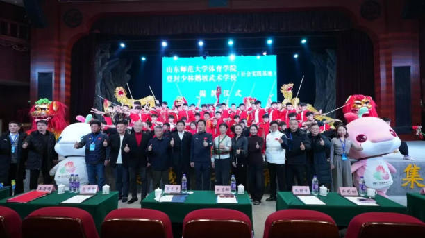 仪式现场,双方先通过《砺剑》《有为》两部宣传片,集中展现了各自的办学积淀与育人成果。鹅坡武校的刚劲武魂与山东师大的学术底蕴交相辉映,为这场跨界合作奠定了坚实基础。