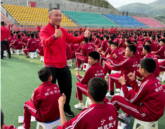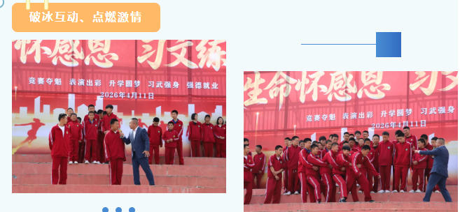 鹅坡武校政训总教练赵跃作动员讲话。他表示,长期以来,梁少宗校长始终心系师生成长,坚守教育初心,以深厚教育情怀引领学校高质量发展,助力广大学子成长成才。本次报告会能够顺利举办,离不开梁校长的悉心指导与大力支持。他指出,全体师生要以此次报告会为契机,常怀感恩之心,感恩党和祖国的守护,感恩父母的养育关爱,感恩老师与教练的谆谆教诲和悉心打磨。他要求,全体人员要严守纪律、保持肃静,以专注认真的态度充分展现鹅坡师生良好的精神风貌;要勤于思考、主动交流,紧密结合自身学习和训练实际,多反思、多感悟,真正做到学思结合、学以致用;要认真总结、持续提升,把感恩之心转化为奋进动力,将励志之志融入日常一言一行。
