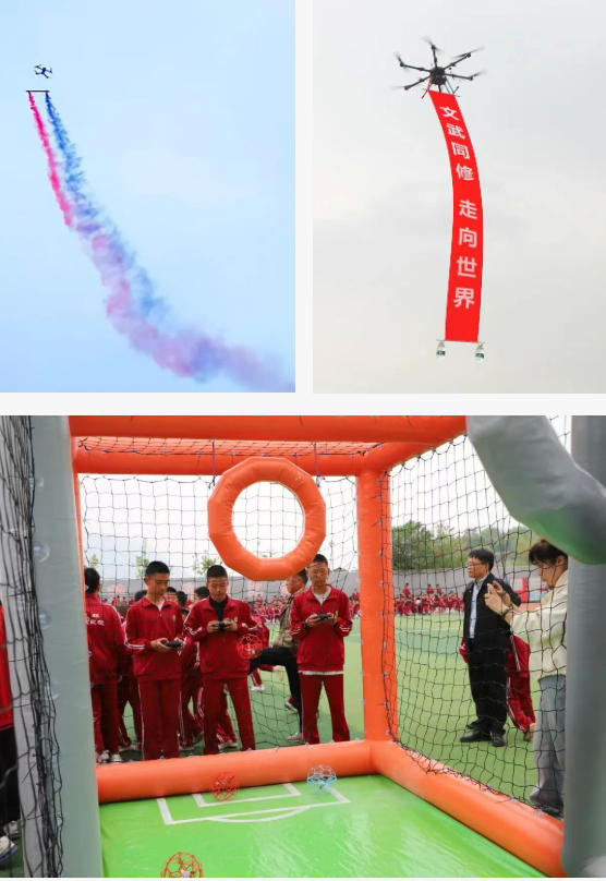 在工作人员的精准操控下,机器人和机器狗展现出极强的灵活性,生动诠释了科技的灵动与力量。随后,大型无人机飞行、穿越机实操体验接连上演,精彩纷呈,令在场学生目不暇接,啧啧称奇。