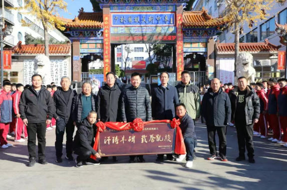 11月19日,登封少林武术协会荣誉主席焦红波、主席郑光荣一行,专程来到少林鹅坡武术学校,赠授贺匾,表彰其在第十五届全运会开幕式上的卓越表现。牌匾以“汗铸丰碑 载誉凯旋”为铭,既凝练肯定了鹅坡学子以汗水诠释武术人坚韧精神的拼搏底色,更高度赞扬鹅坡让传统武术在国家级舞台焕发新声、为中华武术全球传播树立典范的突出贡献。鹅坡武校校长梁少宗热情接待,并郑重接受贺匾。
