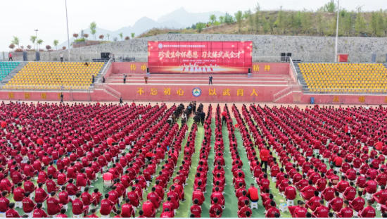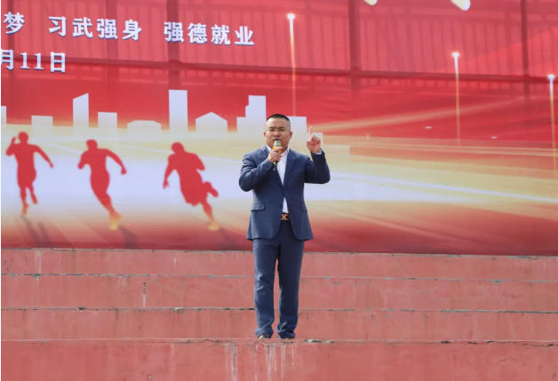 鹅坡武校政训总教练赵跃作动员讲话。他表示,长期以来,梁少宗校长始终心系师生成长,坚守教育初心,以深厚教育情怀引领学校高质量发展,助力广大学子成长成才。本次报告会能够顺利举办,离不开梁校长的悉心指导与大力支持。他指出,全体师生要以此次报告会为契机,常怀感恩之心,感恩党和祖国的守护,感恩父母的养育关爱,感恩老师与教练的谆谆教诲和悉心打磨。他要求,全体人员要严守纪律、保持肃静,以专注认真的态度充分展现鹅坡师生良好的精神风貌;要勤于思考、主动交流,紧密结合自身学习和训练实际,多反思、多感悟,真正做到学思结合、学以致用;要认真总结、持续提升,把感恩之心转化为奋进动力,将励志之志融入日常一言一行。